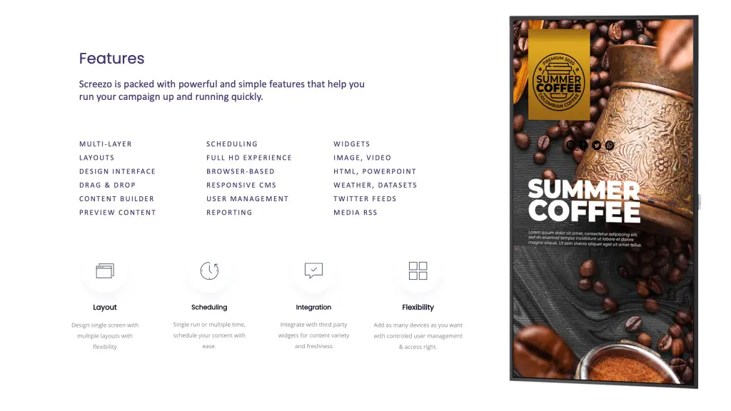 Established a unique and appealing brand identity for Screezo in the digital signage market.